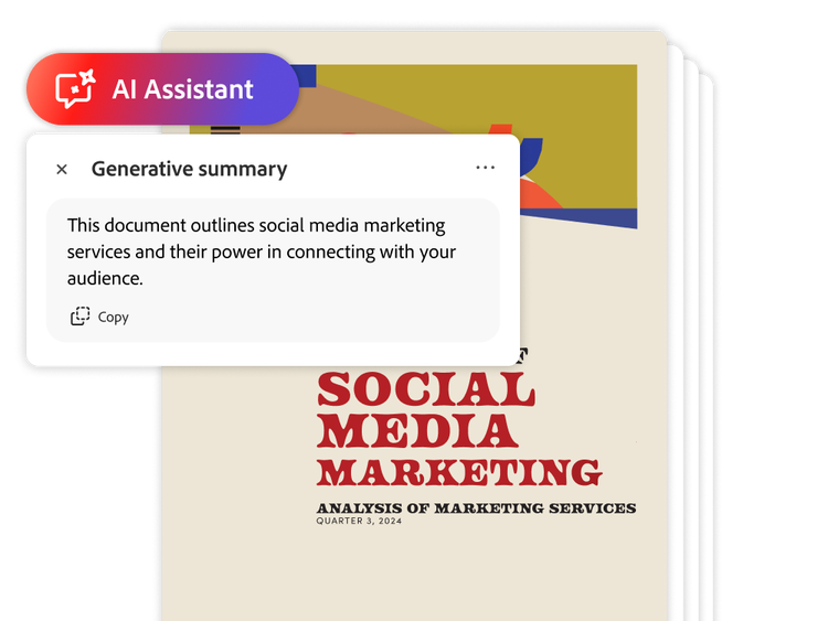 Meet Adobe Acrobat Studio — your new intelligent knowledge hub. It’s built on the enterprise-trusted foundation of Acrobat, with added features like pre-built AI Assistants, PDF Spaces knowledge hubs and Adobe Express Premium. With it, teams can uncover insights, manage projects and create on-brand content — all in one secure platform.