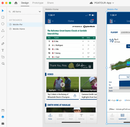 El PGA TOUR emplea Adobe Creative Cloud para diseñar aplicaciones y experiencias sitio web con el fin de ofrecer contenido sobre lo que ocurre entre bastidores, noticias y narraciones.