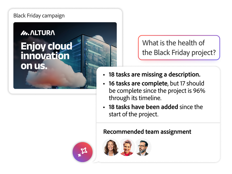 Ein zentraler Ort für die Planung von Kampagnen, Erstellung und Aktivierung von Briefings und Orchestrierung von Aufgaben: Workfront verknüpft zuvor fragmentierte Planungsdaten, damit sie sich so strukturieren lassen, dass nützliche Projektinformationen und Visualisierungen entstehen.