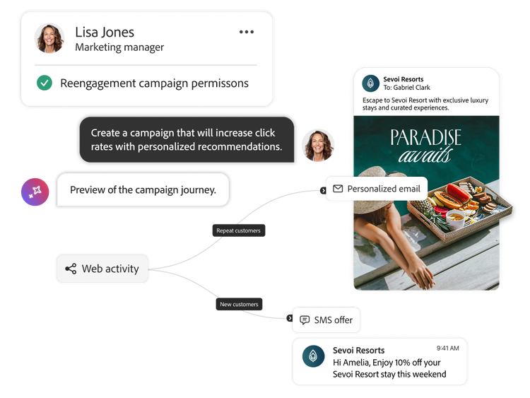 Built-in governance controls, with permissions, auditability and traceability mean you can confidently scale personalised experiences across channels. Independent of where experiences are created or initiated, your teams will always get full visibility and control of agentic actions, ensuring compliance with your corporate guidelines.