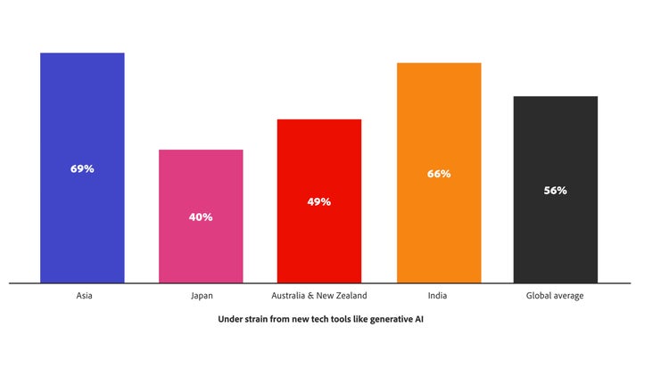 CMOs and senior marketing leaders know the power of personalisation, with 91% agreeing it will drive growth in 2025. Buoyed by the expectation that generative AI will improve the speed and volume of content production, the technology is increasingly being deployed. But it comes at a price, according to marketing and CX teams, with many signalling AI implementations as a strain on workflows. This is notably higher in India (66%) and Asia (69%), with both markets outstripping the global average (56%).