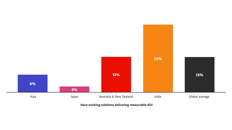 India stands out as a leader, delivering AI-driven results at twice the global average. Meanwhile, brands in Australia and New Zealand are seeing returns in line with that standard (12%), while Asia and Japan lag at 6% and 5%, respectively. While much of the region is still assessing AI’s potential, India’s early success highlights what’s possible when AI is deployed with purpose.