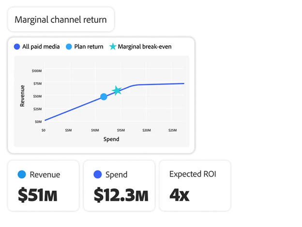 Marketers need forward-looking insights to guide budget decisions in the moment, not after the fact. New marginal response curves within the planning dashboard provide powerful visualisations that show how a selected plan's return compares to its marginal break-even point — enabling marketers to adjust their spending up or down to stay aligned with performance goals. With this level of visibility, marketers can identify when additional spend in a channel or tactic is likely to deliver diminishing returns and proactively reallocate budgets to areas with greater impact.