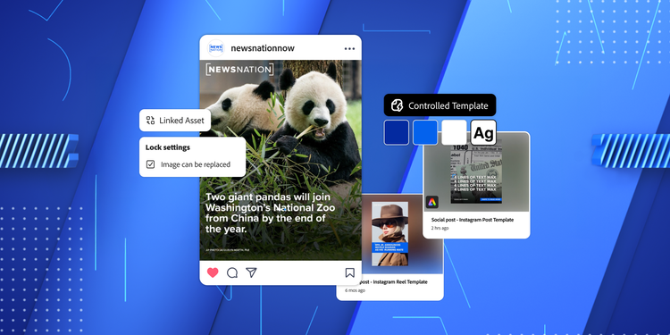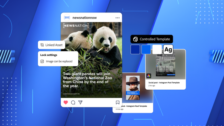 Because brand safety and accuracy are non-negotiable, NewsNation builds strict controls into every Adobe Express template — from character limits to locked frames and approved colour palettes. Producers get freedom to publish quickly, while designers maintain governance.