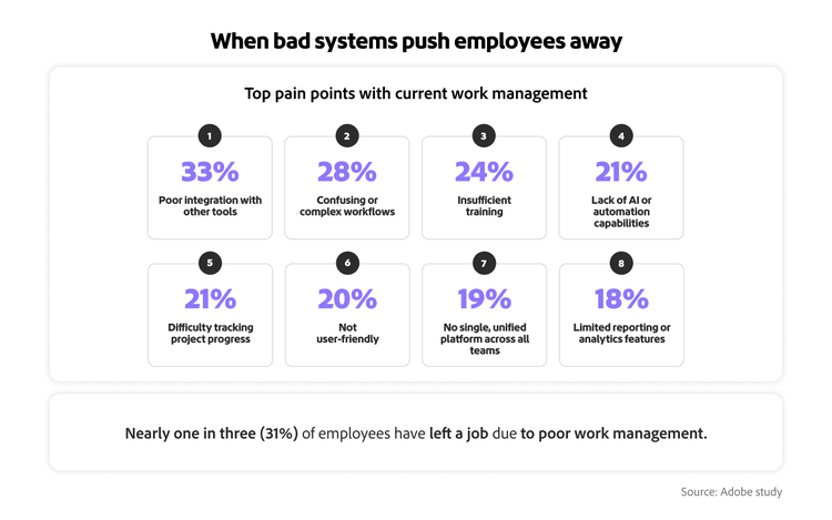 - Nearly one in three surveyed employees has left a job due to poor work management.
