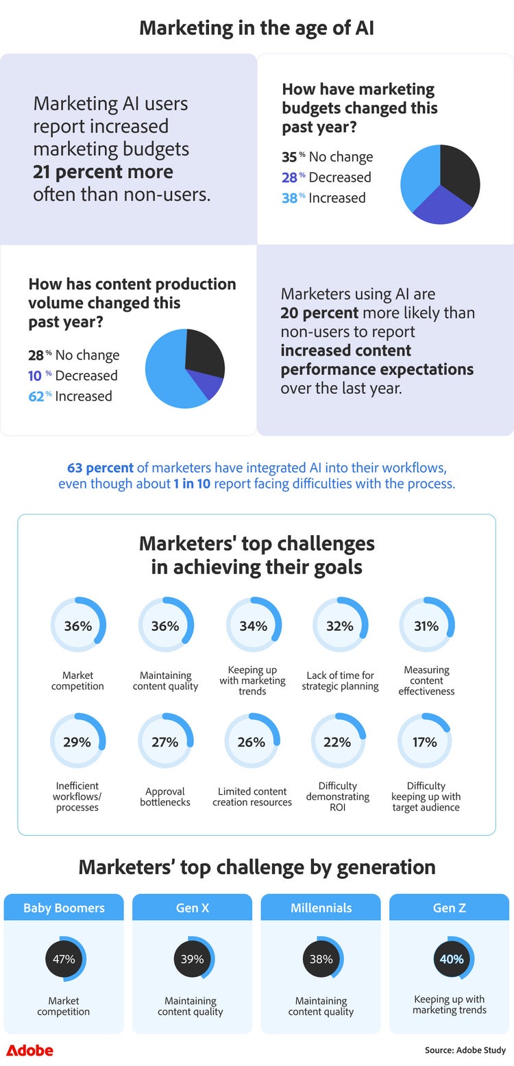 - Marketers who used AI in the last year were 21% more likely to gain or earn additional production budget than those who hadn't adopted AI