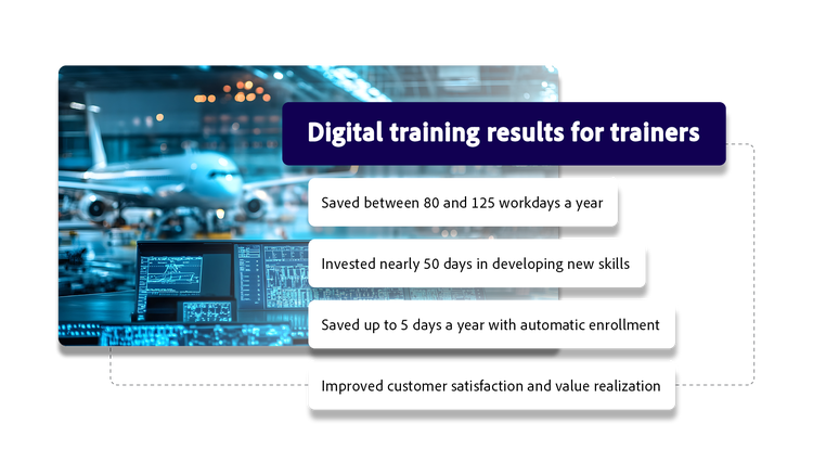 Now, self-paced content can be delivered in any region at any time, giving airlines the flexibility they need. Trainer presence for certain modules dropped from five days to two, saving more than 40 additional days in one year alone, along with significant travel time and accommodation costs.