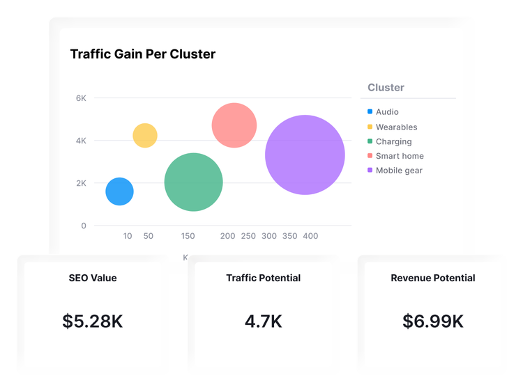 Rank high and show up everywhere buyers search. Find high-value topics, fix technical issues, get mentions and track how your brand appears across Google and AI platforms.