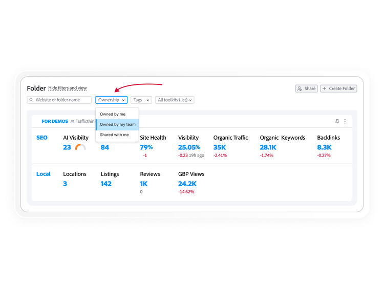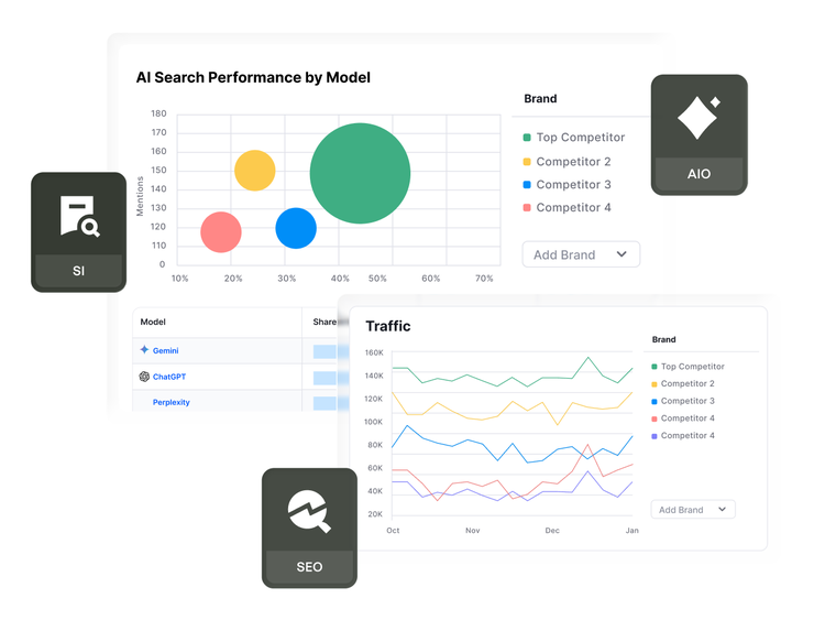 Replace fragmented tools with a connected visibility system — so you can confidently manage how your brand is discovered, evaluated and selected across search engines and AI-driven experiences.