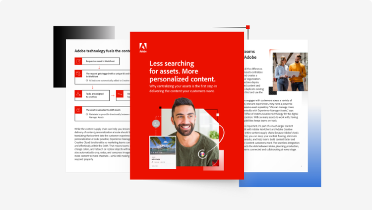 Take a look at Less Searching for Assets, More Personalised Content and learn how a centralised DAM like Adobe Experience Manager Assets can help your organisation build a connected content supply chain, including: