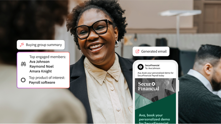 Journey Optimizer B2B Edition builds on traditional lead and account-based marketing metrics with a new measurement — marketing qualified buying groups (MQBGs) — which provides insights into purchase-readiness for entire buying committees. This metric tracks sales and marketing team activities, giving each team visibility into all interactions with potential customers. The result is cohesive experiences and more accurately qualified individuals, buying groups and accounts, that are aligned with the company’s go-to-market strategy.