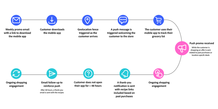 Une application complète est nécessaire pour gérer l’ensemble des campagnes et des parcours de manière à tirer pleinement parti des données. Une plateforme centralisée permettra, en effet, de superviser chaque parcours, sur plusieurs canaux entrants et sortants (web, applications, e-mails, notifications push, SMS, etc.). Elle prendra aussi en charge la diffusion du contenu et des offres sur tous les points de contact, comme les systèmes de point de vente, les kiosques, les appareils IoT et les réseaux sociaux.