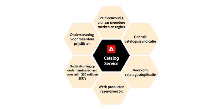 De schaalbare en samenstelbare Catalog Service van Adobe ondersteunt merchandising- en syndicatiestrategieën voor meerdere kanalen, merken, regio's en doelgroepen.