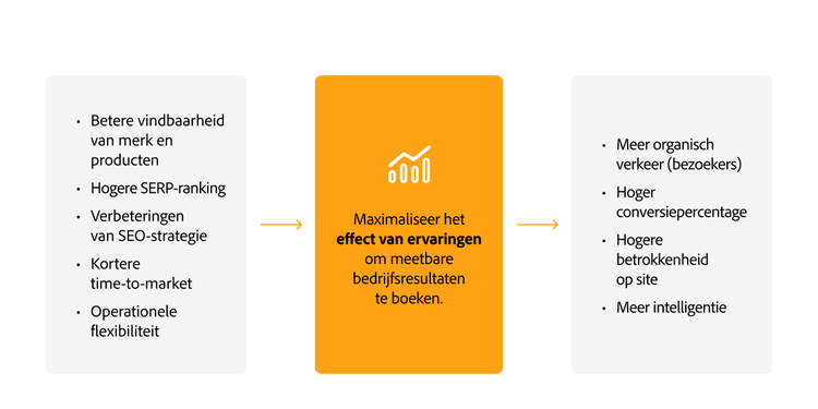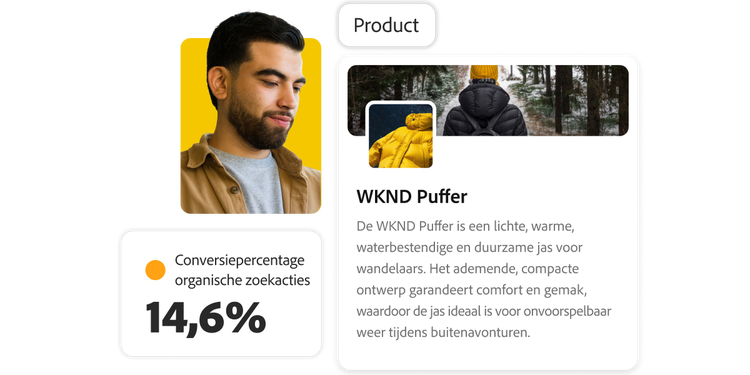 Wat als je meer verkeer naar je winkel kunt leiden zonder de reclame-uitgaven te verhogen? Of de conversiepercentages kunt verhogen zonder dure datawetenschappers in te zetten of korting te geven op je producten? Wat als je al je klanten gepersonaliseerde ervaringen kon bieden? Innovaties van Adobe Commerce verschaffen je exact deze mogelijkheden – met geavanceerde functies die zijn ontworpen om je organische verkeer te bevorderen en de conversies te maximaliseren. Het betreft functies zoals: