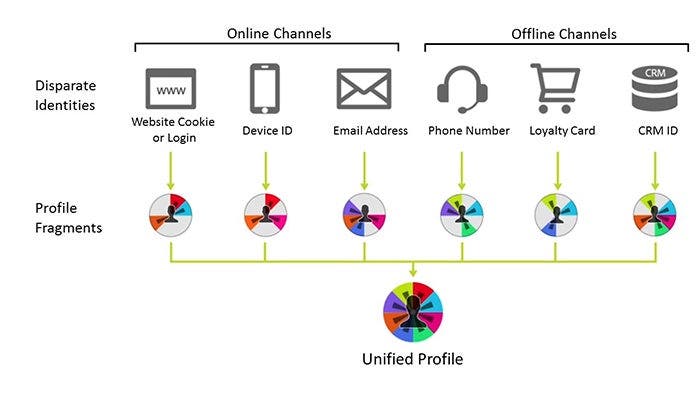 Figure 4: Identity resolution is the matching of profile fragments from all the interactions a consumer has with a brand.