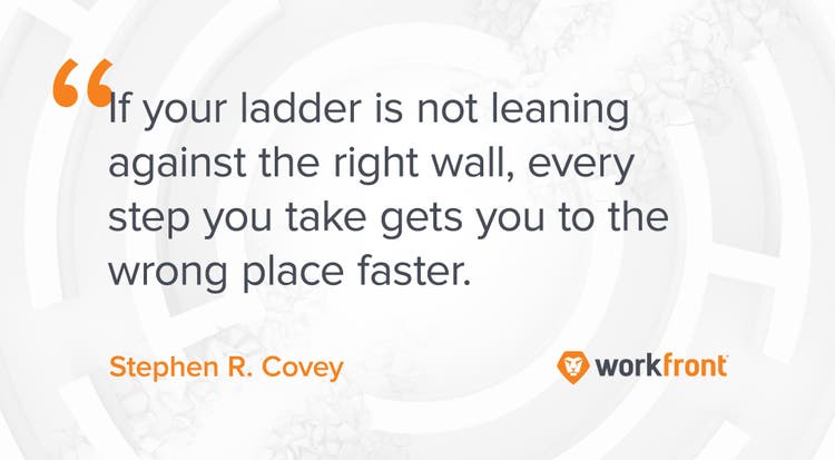 "If your ladder is not leaning against the right wall," Covey wrote, "every step you take gets you to the wrong place faster."