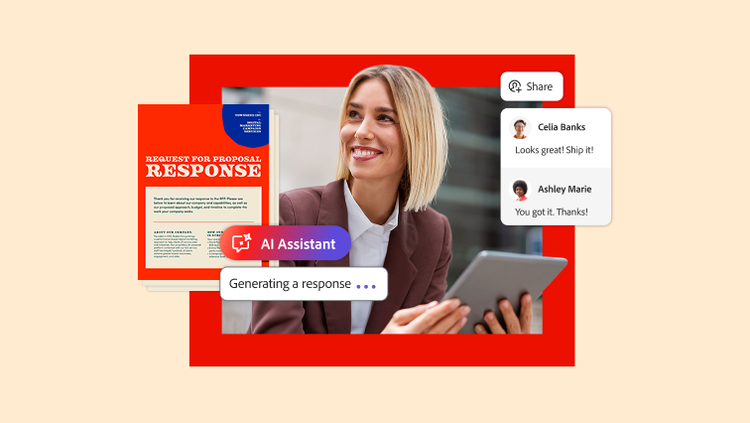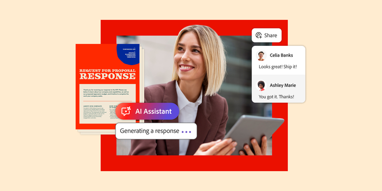 Chanasit notes that Adobe Express, another tool within Acrobat Studio, can help sales teams easily align proposals with approved branding and design. “AI Assistant can help create a draft,” he says. “And then, once you have your draft, teams can go to Adobe Express, pick out a template, and start populating their text and building out their sales proposal.”