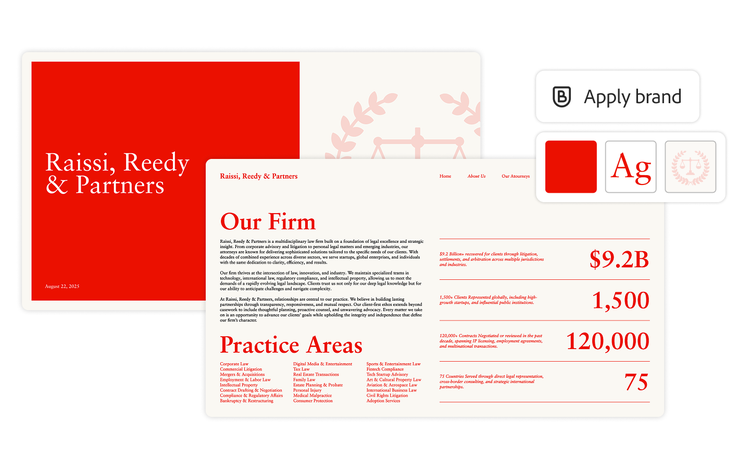 Adobe Express offers users a simple way to create what Chanasit calls “standout” content — assets like professional presentations, reports, and social media content. The tool can help legal teams apply consistent branding to documents where needed, approve templates with locked elements such as fonts and colors, quickly resize content, and insert or remove images.