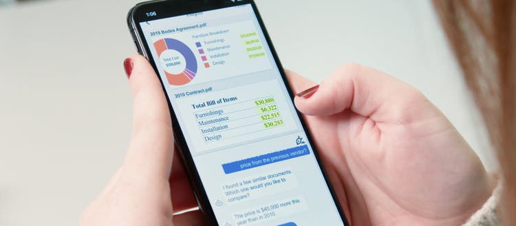 “How much does this cost?” I ask the document. The Intelligent Agent, powered by AI, uses NLP (natural language processing) to translate the voice and turn my question into a semantic query to quickly search the document. Then I can ask a more complicated question: