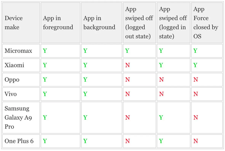 This is the biggest factor behind low delivery rates of mobile push notifications in India. Battery-optimisation features in both standard Android and custom versions of Android used by some Chinese manufacturers can shut off apps and their services, preventing them from receiving notifications.