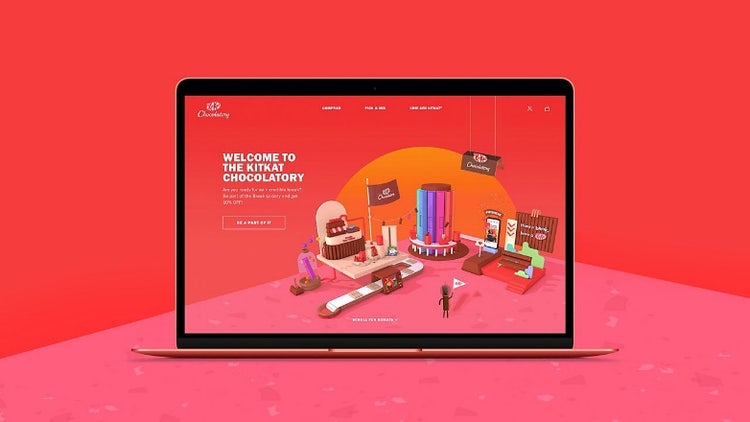 O primeiro layout do projeto foi de dar água na boca. Construído por meio de uma lógica que direciona as motivações de forma atrativa e lúdica, proporcionando uma experiência envolvente, memorável e única, o e-commerce da KitKat Chocolatory é totalmente desenvolvido com conceitos de gamificação, tendência que busca aplicar a diversão e os elementos engajantes dos jogos às atividades cotidianas. Dessa forma, é fácil passar alguns bons minutos navegando pelo site!