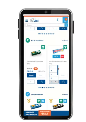 O site traz ainda, de forma bem clara, quais são as promoções disponíveis, sejam elas semanais, quinzenais ou sazonais. A partir dessa funcionalidade, o Nestlé Até Você apresenta para o cliente o “desconto progressivo”, uma dinâmica promocional baseada na compra de itens com medalhas ou ticket de compra. Quanto mais itens com medalha o varejista comprar ou quanto maior for seu ticket de compra, maior o desconto em seu carrinho.