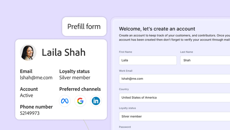 Reduce errors and effort by pre-filling forms with data from back-end systems like CRM and enterprise resource planning (ERP). Then post submitted form data back to your systems for continued pre-fill optimization.