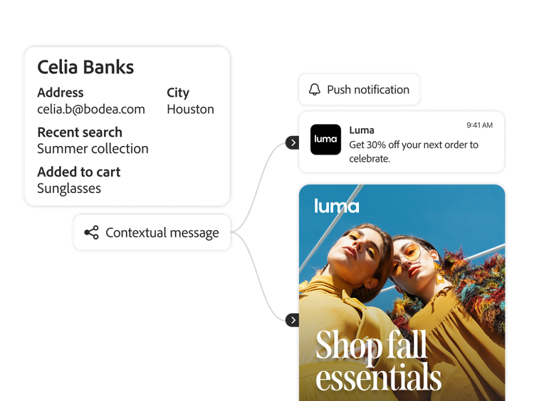 Connect Adobe products to create experiences that are right on time and just right for your customers.