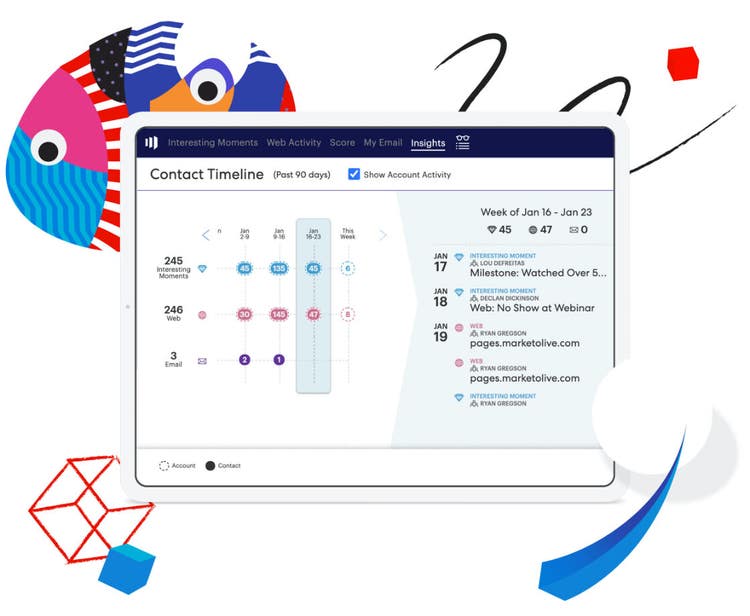 Obtén un panorama integral de tus compradores y sus recorridos únicos para aumentar la precisión de tus esfuerzos de marketing y ventas B2B. Con perfiles unificados y completos, y un análisis profundo sobre personas y cuentas realizado con IA, los equipos pueden contar con información valiosa para generar grupos de compras, predecir el interés de los compradores y crear y activar segmentos del público con precisión. Los representantes de ventas reciben resúmenes y alertas en tiempo real para tomar acciones rápidamente y participar de forma más inteligente. La atribución avanzada ofrece los datos necesarios para optimizar los ingresos en cada punto de contacto.