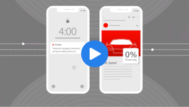- Recorridos del cliente activados por datos. Aumenta las tasas de conversión enviando mensajes oportunos y relevantes y vuelve a captar a los clientes de manera inteligente usando información del recorrido en tiempo real.