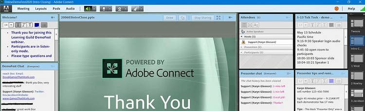 "Adobe Connect works for us. Presenters aren't limited to what types of content they can present, says Karyn Gleeson, Online Production Manager at The Learning Guild. “We've worked with many types of technology, but we still recommend Adobe Connect for a robust, engaging online session."