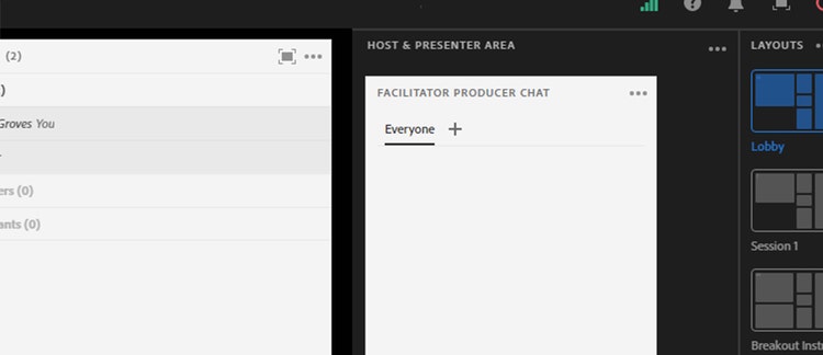 The Host and Presenter Area in Adobe Connect allows meeting facilitators and producers to collaborate behind the scenes.