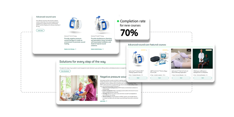 Healthcare professionals can now move from exploring a device on the company website to a related course in just a few clicks encountering relevant learning opportunities at the moment of interest. As a result, the completion rate for learners beginning a new course is 70%.