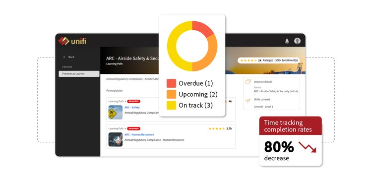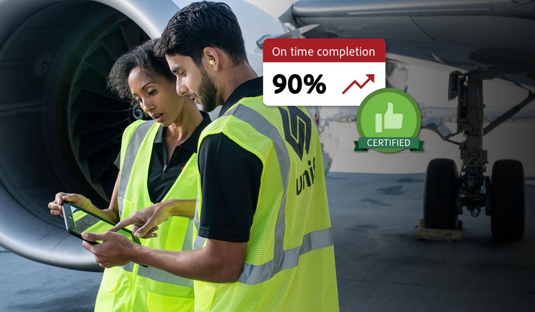 Unifi also uses the records to demonstrate that its training meets or even exceeds demands from airline carriers. Typically, carriers will require that Unifi employees complete their own recommended training, which could be 40 extra hours of work. Using reports from Adobe Learning Manager to clarify exactly what employees are learning, Unifi has reduced mandatory carrier training to just 5.5 hours in some cases—an 86% reduction due to better tracking.
