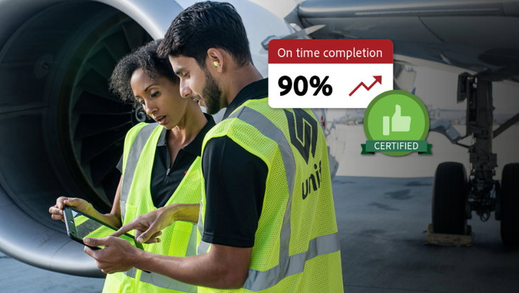 Unifi now records all of its hybrid learning in Adobe Learning Manager: in-person and virtual training, self-paced digital learning, and on-the-job training. The learning and development team can compile this information into a simple report to demonstrate that employees meet standards such as IATA Safety Audit for Ground Operations (ISAGO) certification.