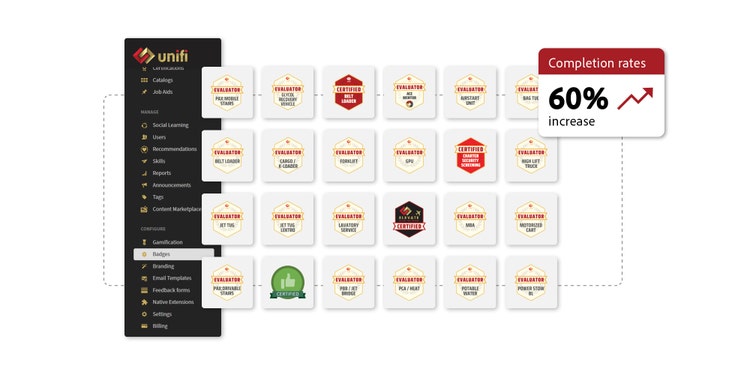 Unifi plans to put Adobe Learning Manager at the center of a culture of continuous learning and development. Badges boost motivation and encourage employees to complete courses, even going beyond mandatory lessons to improve overall skills and advance down career paths. Plans for gamified experiences such as points and leaderboards will encourage friendly peer-to-peer competition that will keep employees learning. Since the transition to Adobe Learning Manager, this encouragement along with the easy-to-use mobile interface has helped increase training completion rates by 60% and reduced the ramp up time for new hires.
