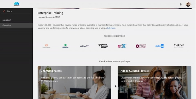 With a library of over 86,000 titles and specifically designed learning pathways, Adobe Learning Manager lets you design learning programmes that support your current and long term growth strategies.