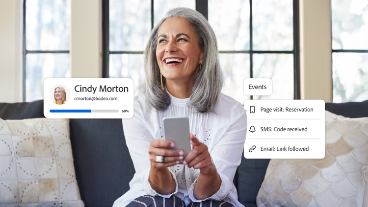 Adobe Real-Time CDP führt bekannte und unbekannte Daten von Einzelpersonen und Firmen zu umfassenden, Echtzeit-Kunden- und Konto-Profilen zusammen. Diese Profile werden kontinuierlich aktualisiert – so können eure Teams personalisierte, relevante Erlebnisse in großem Umfang auf jedem Kanal bereitstellen.