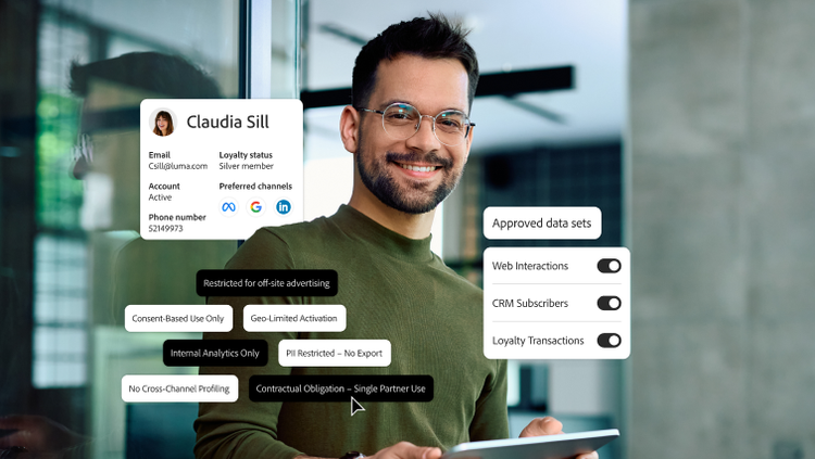 Anstatt sich auf nachträgliche Kontrollen oder einzelne Regeln zu verlassen, bettet Adobe Governance direkt in die Daten ein. So ist Compliance kein nachträglicher Gedanke, sondern eine integrierte Funktion.