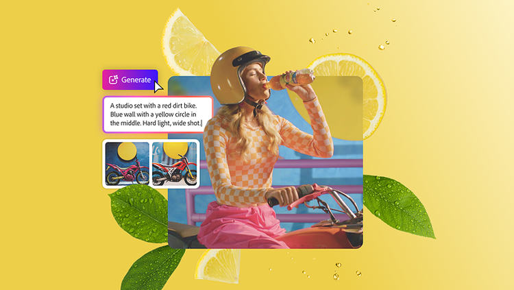 Diese kräftigen, aufmerksamkeitsstarken Hintergründe hoben die Eistee-Bilder, umgeben von perfekten Fruchtscheiben, optimal hervor. Tonalität, Stil und die visuelle Identität der Kampagne nahmen schnell Gestalt an, und mit Firefly nahtlos integriert in Adobe Photoshop konnte das Team ihre Ideen in Echtzeit verfeinern.