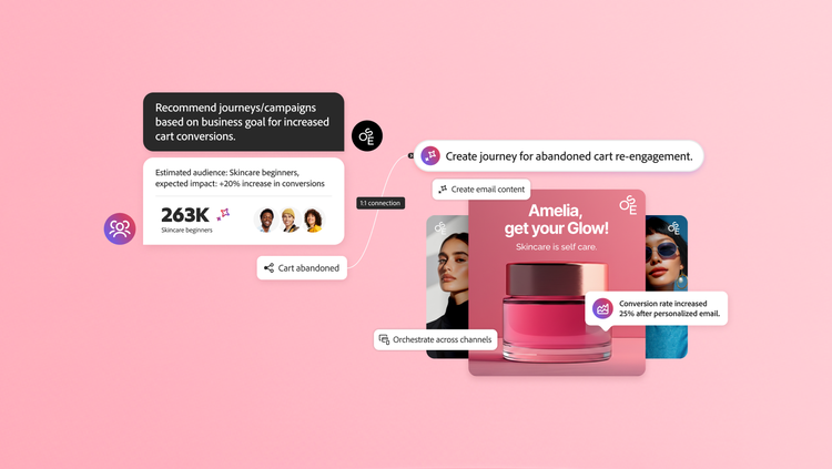Jede Kundeninteraktion ist eine Opportunity – aber nur, wenn ihr das richtige Erlebnis über den richtigen Kanal zum richtigen Zeitpunkt bereitstellt. Deshalb starten wir eine neue Welle KI-gestützter Funktionen für Adobe Journey Optimizer. Sie sind so konzipiert, dass sie Marketing-Fachleuten helfen, über bloße Intuition hinauszugehen und zu fundierteren, ergebnisorientierten Entscheidungen in jeder Phase der Customer Journey zu gelangen.