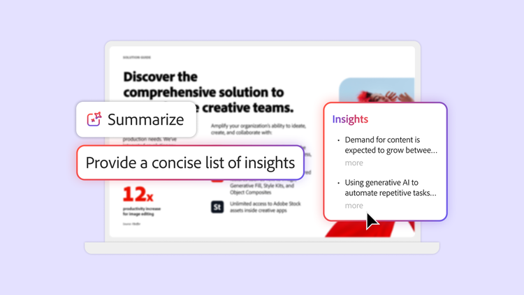 KI-Tools spielen eine aktive Rolle bei der Content-Entwicklung. Von Vorschlägen für Grammatik und Verständlichkeit bis zu Zusammenfassungen oder Textentwürfen gilt: KI unterstützt Teams dabei, schneller zu agieren und effektiver zusammenzuarbeiten. Die Überprüfungs- und Kommentartools in Adobe Acrobat erleichtern euch zum Beispiel das Einholen von Feedback von allen Beteiligten. Gleichzeitig kann KI damit beginnen, Feedback zu organisieren und zu interpretieren, um die Versionskontrolle zu verbessern und Reibungsverluste in Dokumenten-Workflows zu reduzieren.