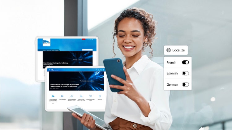 So international wie das Unternehmen ist auch die Webseite von Erhardt+Leimer: Die Inhalte des Unternehmens sind aktuell in 14 Sprachen und 17 Sprachvarianten verfügbar. Eine Erweiterung um neue Sprachen oder weitere lokale Angebote ist über Adobe Experience Manager jederzeit möglich.