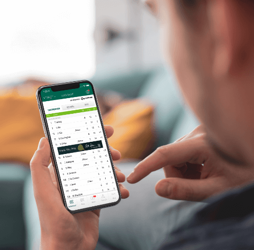Fans können ihren Lieblingsspielern live auf ihren Geräten beim Abschlag zusehen und Turnier-Ergebnisse verfolgen. Das ist Fan-Interaktion.