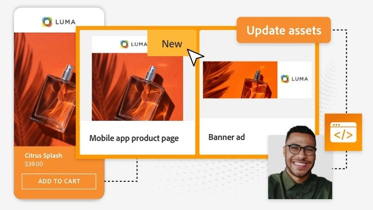 Aktualisiert Assets und digitalen Content überall automatisch, sodass eure Teams aus Marketing und Entwicklung Zeit sparen.