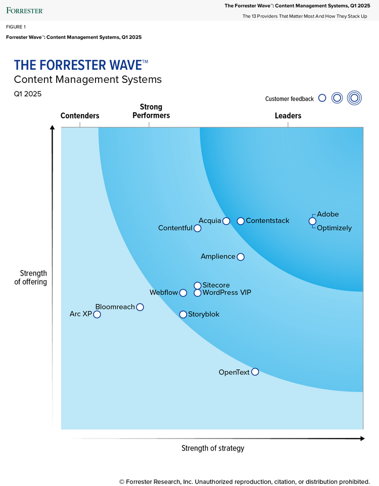Adobe wurde in der Studie The Forrester Wave™: Content-Management-Systeme, Q1 2025 zum „Leader“ gekürt. Lest die Studie, um mehr über Adobes CMS-Funktionen zu erfahren, einschließlich: