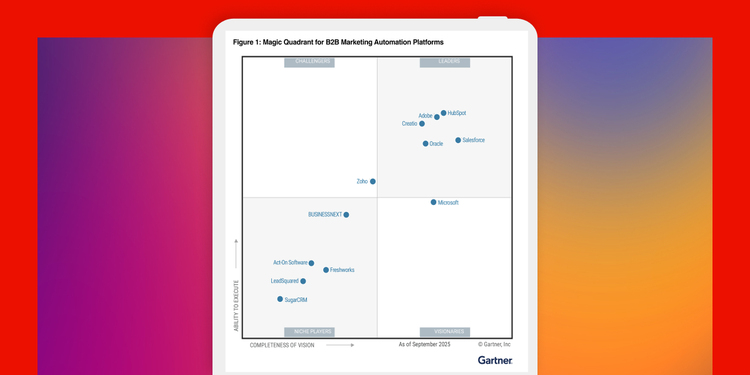 Im Report erfahrt ihr, warum Adobe im Gartner® Magic Quadrant™ für B2B-Automatisierungsplattformen 2025 als „Leader“ eingestuft wurde.