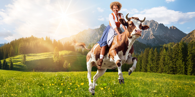 Con estas herramientas integradas, el equipo creó paneles conceptuales en Firefly e hizo realidad un concepto original: colocar a la presentadora del programa en medio de un rodeo, montada en una vaca. Una indicación de IA precisa marcó la dirección: una mujer alegre con un “dirndl” bávaro tradicional, en el aire sobre una vaca, con un prado alpino soleado de fondo. A continuación, el equipo hizo varias versiones del color del traje, el fondo y el atrezo para finalizar un conjunto de conceptos que se utilizaron en vallas publicitarias. Lo que antes requería maquetas elaboradas y largos ciclos de aprobación se convirtió en un proceso fluido que se completa en el mismo día, utilizando Firefly para crear distintas versiones y producir imágenes realistas en cuestión de minutos.