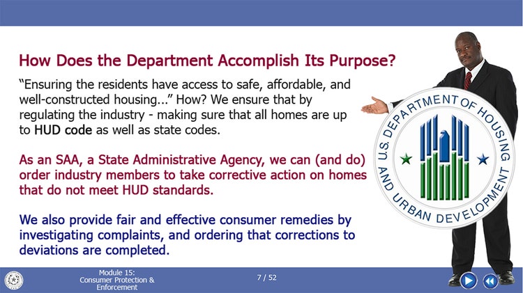 “La formación de las personas a las que regulamos resulta fundamental para el éxito de nuestra agencia”, afirma Jim R. Hicks, director ejecutivo de la Manufactured Housing Division. “Nuestra filosofía es la autosuficiencia a través de la formación. Somos una agencia que se encarga de proteger a las personas consumidoras, y el primer paso para hacerlo consiste en explicar al sector qué puede hacer y qué no”.