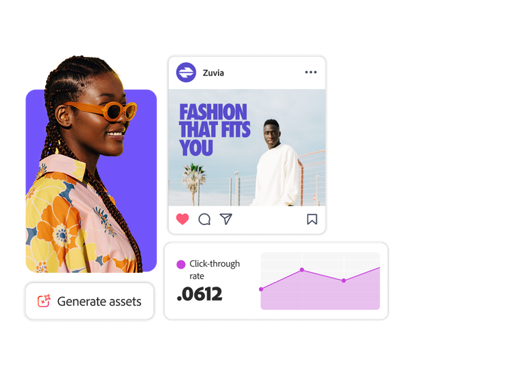 El cumplimiento de las directrices de la marca en marketing consiste en asegurar que todo el contenido de las campañas (anuncios, correos electrónicos, imágenes) se mantenga alineado con el estilo, el tono de voz el uso del logotipo y los estándares normativos de la marca. Con Adobe GenStudio for Performance Marketing, las organizaciones pueden cargar directrices de marca, validar automáticamente el contenido en base a estas directrices, acceder y usar recursos aprobados por la marca, y garantizar el cumplimiento a través de flujos de trabajo de aprobación integrados.
